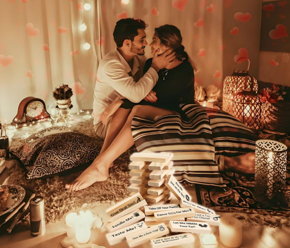 ¿Quieres sentirte más cerca de tu pareja? Convierte cualquier noche en una experiencia única con retos que despiertan risas, complicidad y romance, fortaleciendo el vínculo de una forma divertida y diferente.
